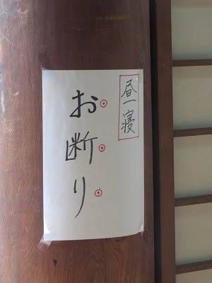 本堂の縁側に座ってハスの花を見ていると、風の音しか聞こえず、時間が過ぎていく感覚をなくします。このような張り紙がないと、本当にウトウトしてしまいます。