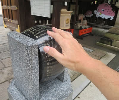 参拝者の多くは表門に設置された「御千度車」を手で回し、境内に入ります。これを回すと足腰の病気・ケガの回復や備えにご利益があると信じられています。