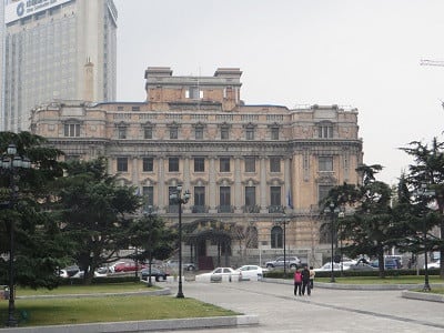 中山路をはさんで旧:大連民政署の北側にある旧:朝鮮銀行大連支店(現:中国工商銀行中山広場支行)は、正面玄関の石柱が凛々しい1920年のルネサンス様式の建築です。