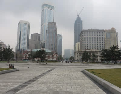 中山広場は直径200mもある巨大な円形で、外周はロータリー交差点として膨大な数の自動車が行き交っています。広場の周囲には、日本一高いビルである大阪のあべのハルカスの高さ300mを優に超す超高層ビルが林立しています。低層の近代建築群の借景となるようにそびえたつ光景は、中国の経済成長のすさまじさを象徴しているように感じられます。