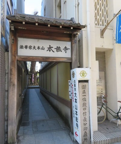 御池通に面した境内地は、寺が経営する「ホテル本能寺」のビルになっており、背後に寺があるとは誰も気付かないでしょう。