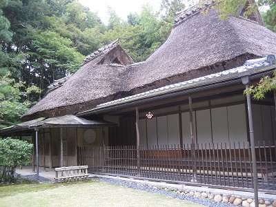 旧正法院家住宅のすぐ裏側には茅葺(かやぶき)屋根が美しい「離れ茶室」がある。この建築、上半分はのどかな田舎風の雰囲気を感じさせるが、下半分は数寄屋風で洗練された佇まいを見せている。このギャップが実に面白い。