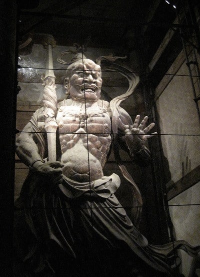 奈良・東大寺で大仏と並んでとても有名な金剛力士像=仁王様は、今にも動き出しそうなほどリアルでなボディラインで高さ8.4mの巨体が表現されています。日本の代表的な仏像彫刻の傑作です。