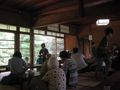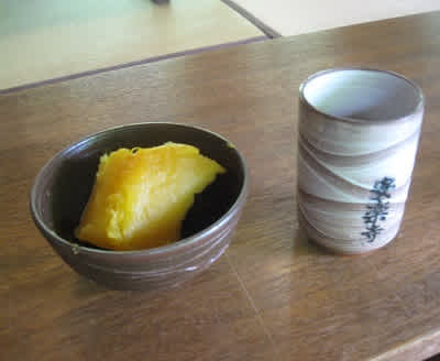 席に着くと子供たちがかぼちゃをサーブしてくれます。サポートする大人たちも含めて檀家の人たちの心温まるもてなしが印象的です。猛暑の中ですが、「行ってよかった」と感じられる催しです。