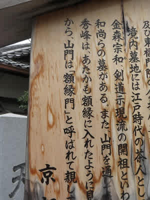 寛永年間(1624-45)に京都で花開いた寛永文化で、小堀遠州と共に時の茶道のリーダーとして名を馳せた金森宗和(かなもりそうわ)の墓があります。宗和は後水尾院とも親交があり、色絵京焼を完成させた野々村仁清(ののむらにんせい)を見出したことでも知られています。寺には野々村仁清の重文「銹絵水仙文茶碗」も伝わっています。