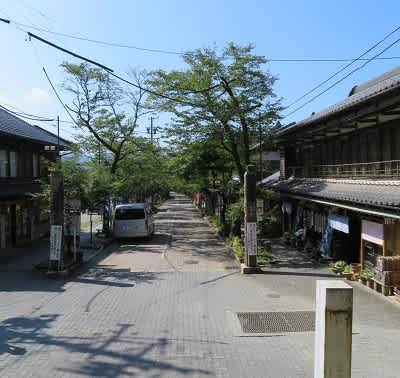 昔の雰囲気をこわさないようデザインされた建物が多く、江戸時代の街道を歩いているような気分にさせてくれます。サクラとモミジが並木として植えられており、春秋のピーク時以外にも美しい緑のトンネルを作ってくれています。