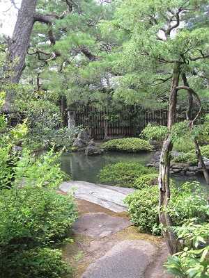 町屋の中庭であり、無鄰菴とは大きさでは比べ物になりませんが、石の配置や松の見せ方がとてもダイナミックです。しかし奇をてらうような落ち着きのなさは全くありません。空間設計のセンスの良さには驚愕です。