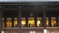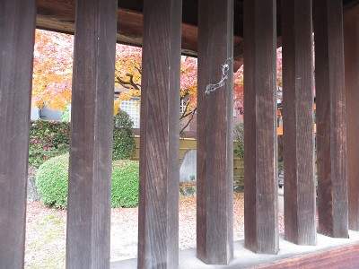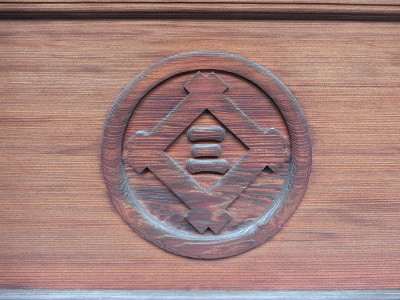 記念庭園は公開されていませんが、門の横の欄間からわずかに内部をうかがうことができます。シンプルな庭園と朱い鳥居が見えます。鳥居は三国稲荷大明神で、江戸時代に本店があった頃から祀られています。白壁で囲まれた記念庭園の敷地は、オフィスの多い周囲の町並の中では異彩を放っています。ここが特別な空間であることをうかがわせます。