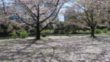 広島城から見たひろしま美術館と高層のリーガロイヤルホテル