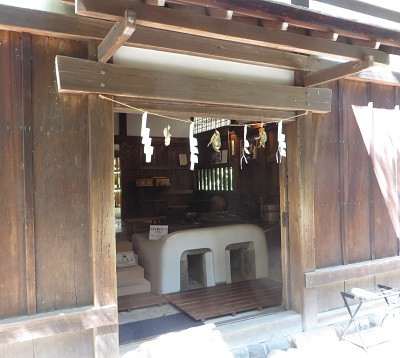 本殿の西隣に大炊殿があります。神様へのお供え物を調理していた台所です。お寺での台所の公開は比較的ありますが、神社での公開は他に聞いたことがありません。