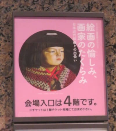 ウッドワン美術館の目玉作品である岸田劉生の「(毛糸肩掛せる)麗子」も来ている。重要文化財の東京国立博物館蔵「麗子(微笑)」よりも1年早い作品で、笑ってはいないが無垢のない幼子の眼が一点を見つめている構図がすがすがしい。東博「麗子」の、幼子というよりも仏像に見えるような悟りを開いた微笑の表情とは対照的で、我が子の成長への思いを絵に込めた岸田劉生が偲ばれる。
