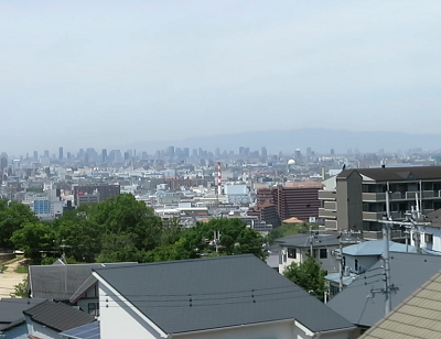 近鉄奈良線にはもう一か所、車窓の名所がある。大阪と奈良の間にそびえる生駒(いこま)山麓を通過する際に絶景が見えるのだ。近鉄奈良線で大阪から奈良に向かうと正面に見えるのが生駒山だ。山の麓にある瓢箪山(ひょうたんやま)駅を通過すると左にカーブしながら電車はぐんぐん山を登り始め、石切(いしきり)駅を過ぎたところでトンネルに入る。石切駅の手前あたりがベスト・ビューで、大阪平野が一望できる。