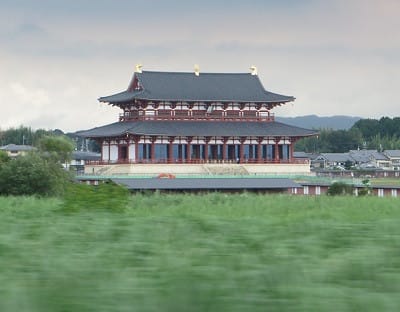1998年に線路のすぐ南側に朱雀門が復元されると車窓は一変した。原野のような土地と青空しかない空間に、突如天平時代を想像させる赤い立派な門が現れたのである。2010(平成22)年には、線路の北側に第一次大極殿が復元され、線路の両側に平城京のシンボルが並び立つことになる。