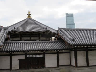 太子奥殿の借景にあべのハルカス