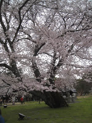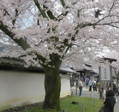 中でも霊宝館のエリア内にあるシダレザクラは絶景です。地を這うように水平に四方に枝を延ばす姿は、まるで龍が踊っているようです。沿道から写真をとっても、大きすぎて全体が収まりません。